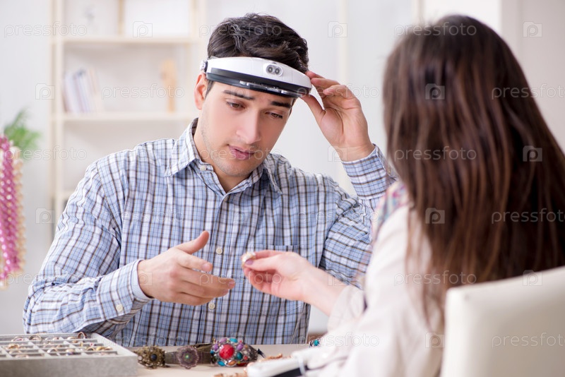 Женщина, посещающая ювелира для оценки драгоценностей