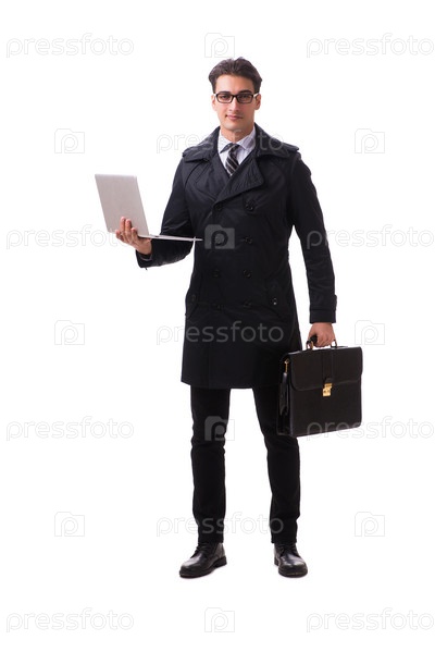 Молодой бизнесмен с ноутбуком, изолированным на белом фоне