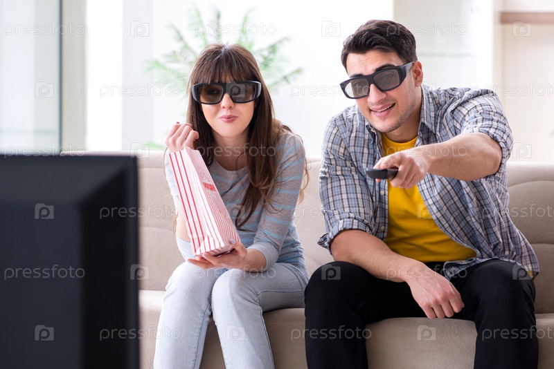 Пара смотрит 3D-фильм дома