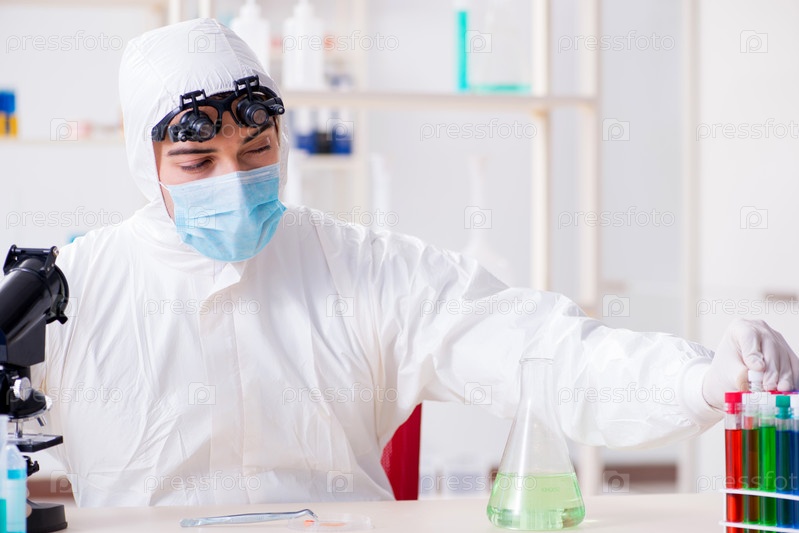 Молодой ученый-химик работает в лаборатории