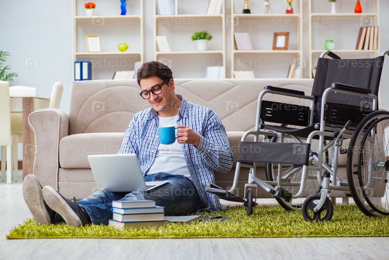 Молодой студент, обучающийся дома