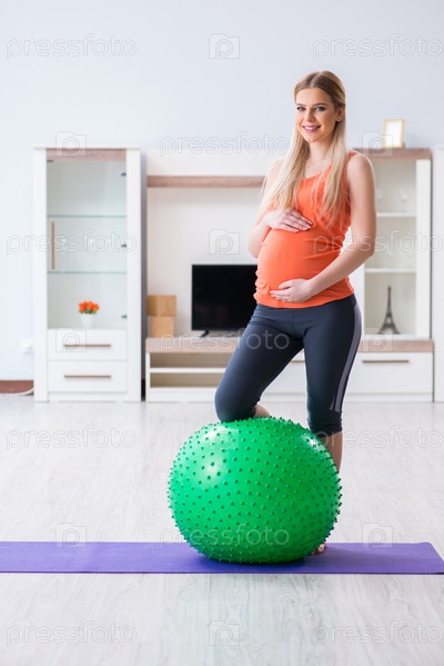 Молодая женщина, готовящаяся к родам, тренируется дома