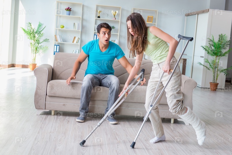 Мужчина-муж поддерживает раненую жену