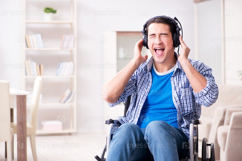 Инвалид слушает музыку в инвалидном кресле