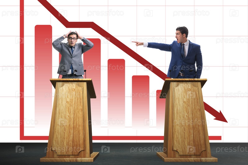 Бизнесмен выступает с речью на трибуне в бизнес-концепции