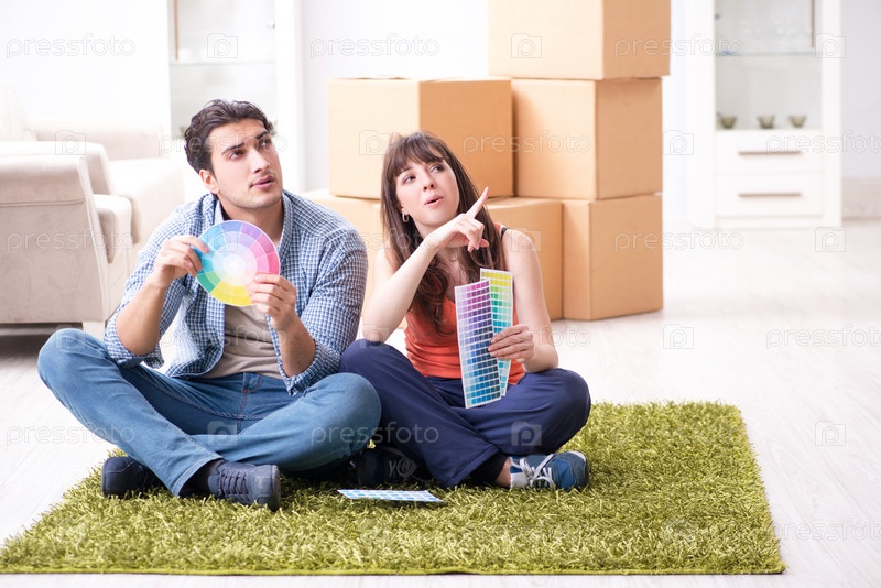 Молодая семья выбирает цвета для новой квартиры