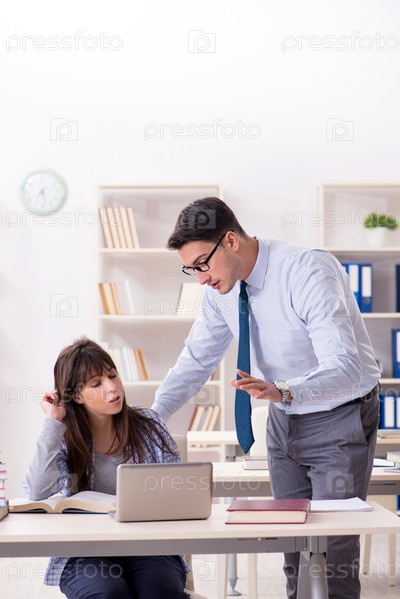 Лектор-мужчина читает лекцию студентке