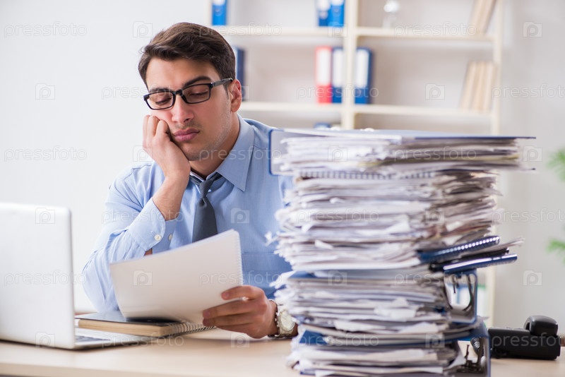 Чрезвычайно занятый бизнесмен, работающий в офисе