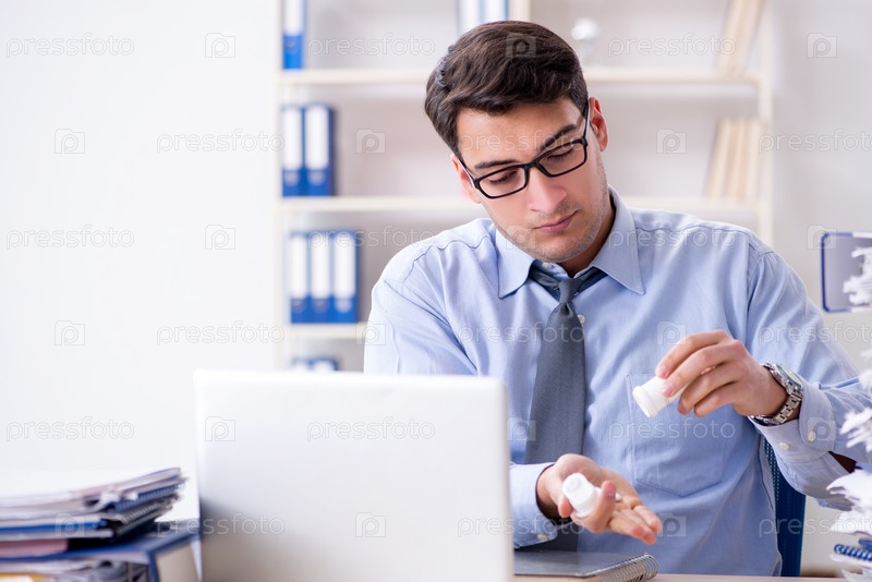 Чрезвычайно занятый бизнесмен, работающий в офисе
