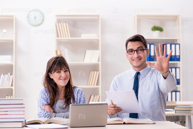 Лектор-мужчина читает лекцию студентке
