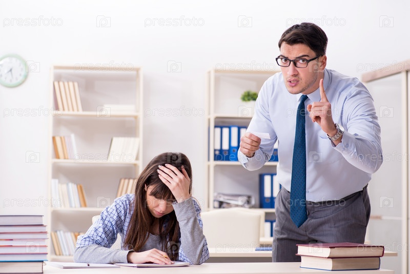 Лектор-мужчина читает лекцию студентке