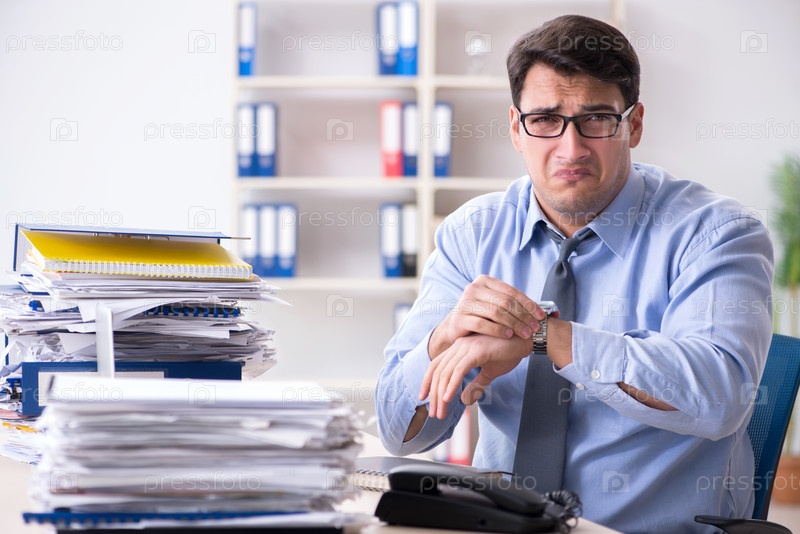 Чрезвычайно занятый бизнесмен, работающий в офисе