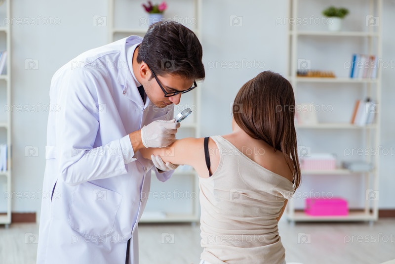 Врач осматривает кожу пациентки