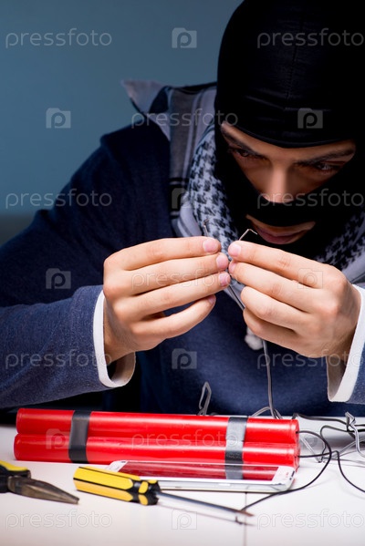 Террористический бомбардировщик готовит динамитную бомбу