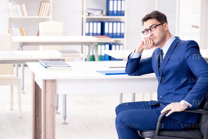 Молодой привлекательный бизнесмен-сотрудник, работающий в офисе за столом