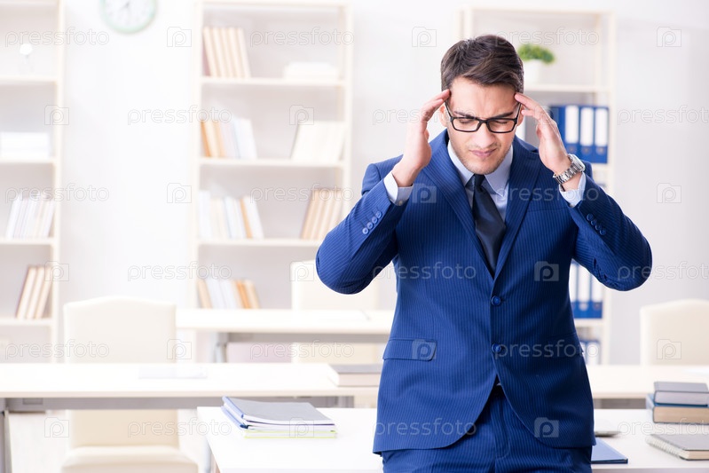 Молодой привлекательный бизнесмен-сотрудник, работающий в офисе за столом