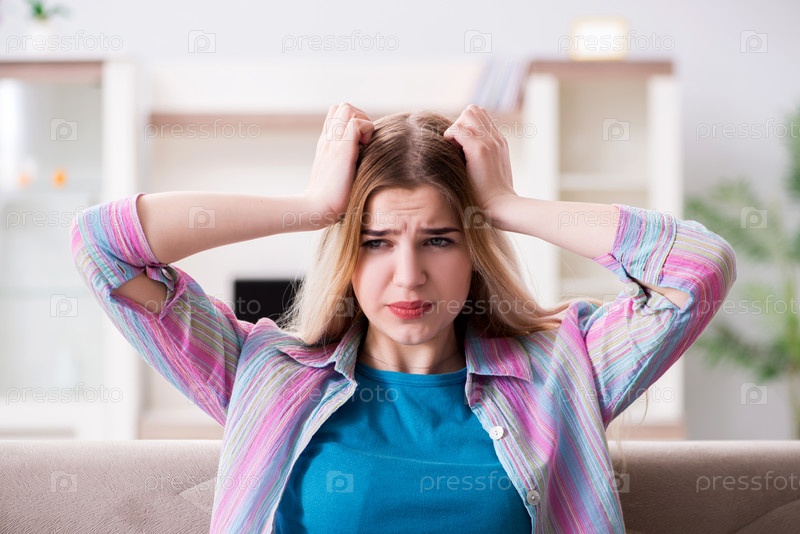 Молодая женщина страдает от боли дома
