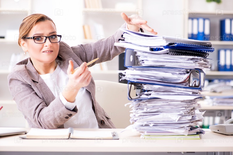 Деловая женщина очень занята текущей бумажной работой
