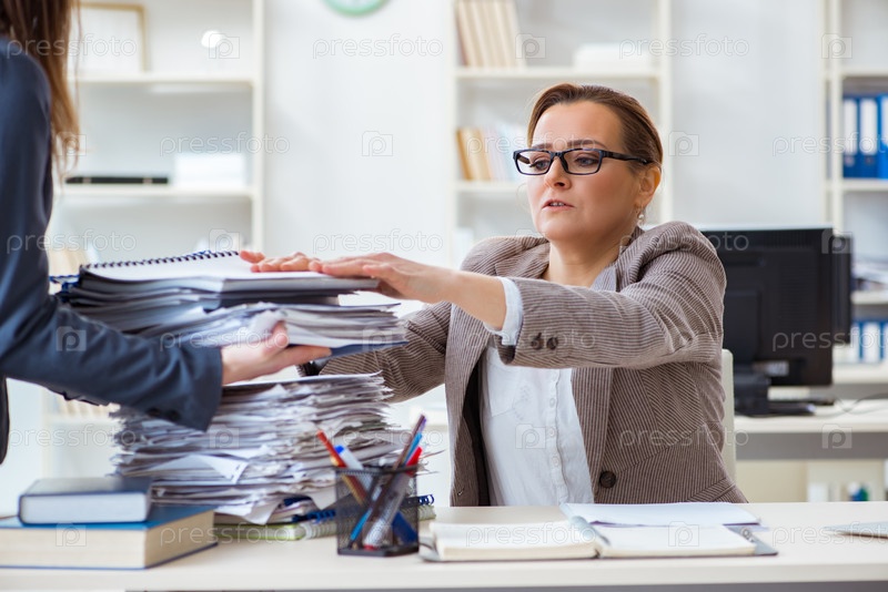 Деловая женщина очень занята текущей бумажной работой