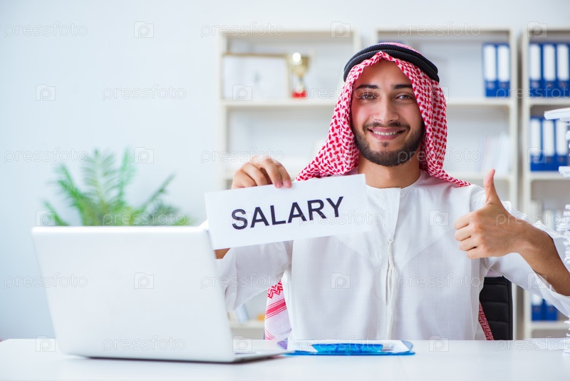 Арабский мужчина сидит за столом с сообщением