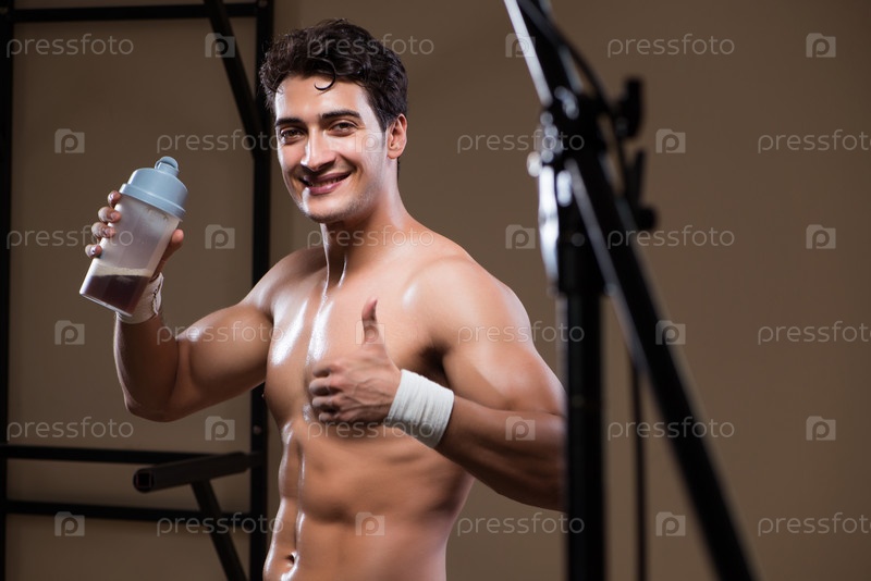 Мужчина с добавками питательных веществ в спортивном тренажерном зале