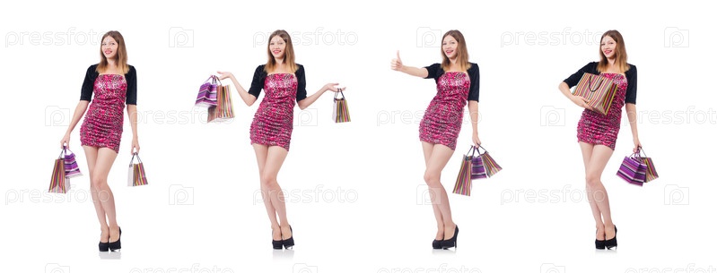 Женщина с сумками для покупок изолирована на белом