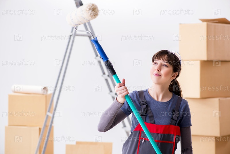 Женщина живописец рисует в новой квартире