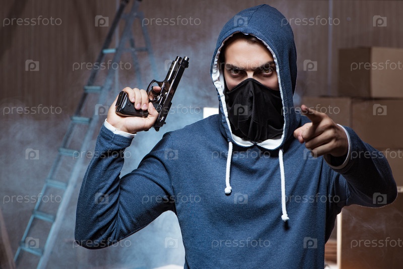 Агрессивный мужчина с пистолетом, носящий маску