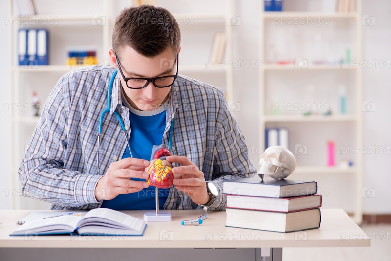 Студент-медик изучает сердце в классе во время лекции