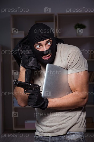Вор, носящий маску из балаклавы на месте преступления