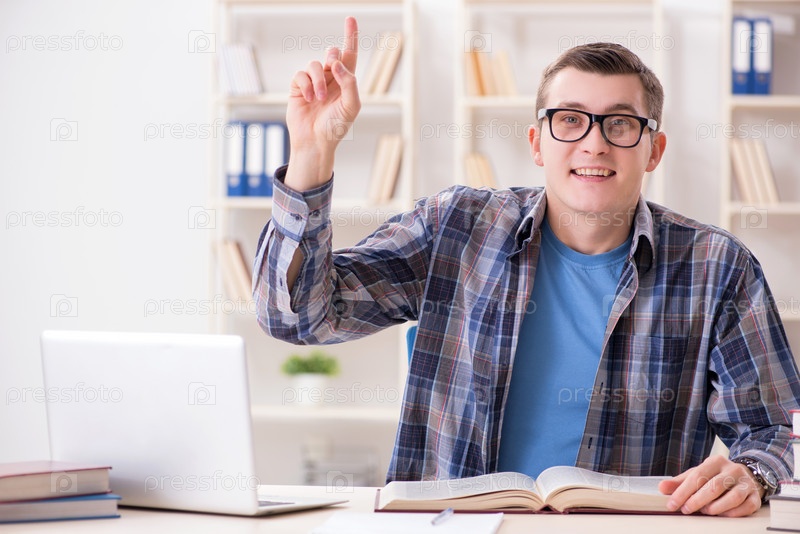Молодой студент изучает через интернет в концепции дистанционного обучения