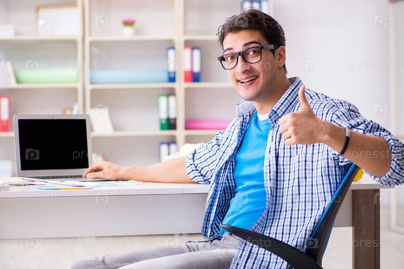 Молодой дизайнер работает над новым проектом и выбирает цвета