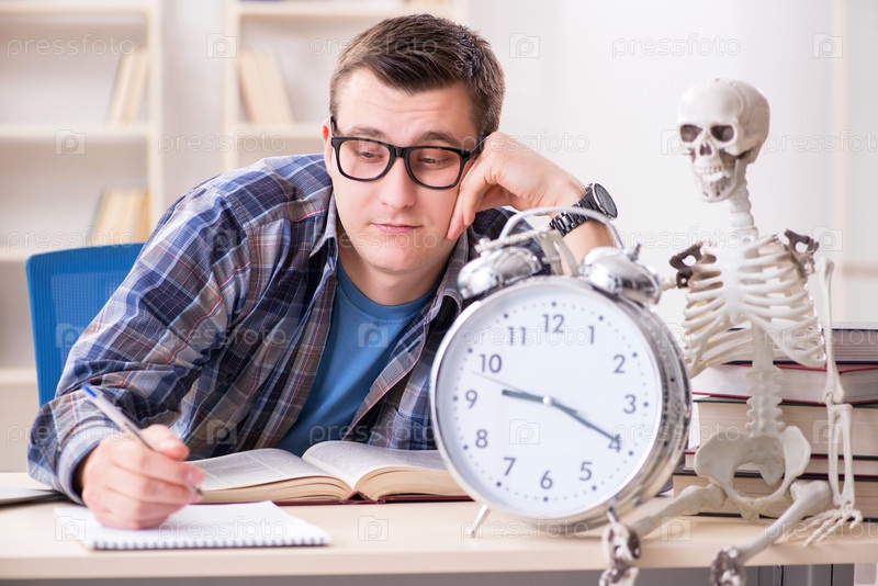 Ученик и скелет готовятся к школьным экзаменам
