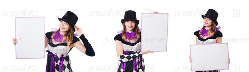 Девушка в костюме арлекина изолирована на белом
