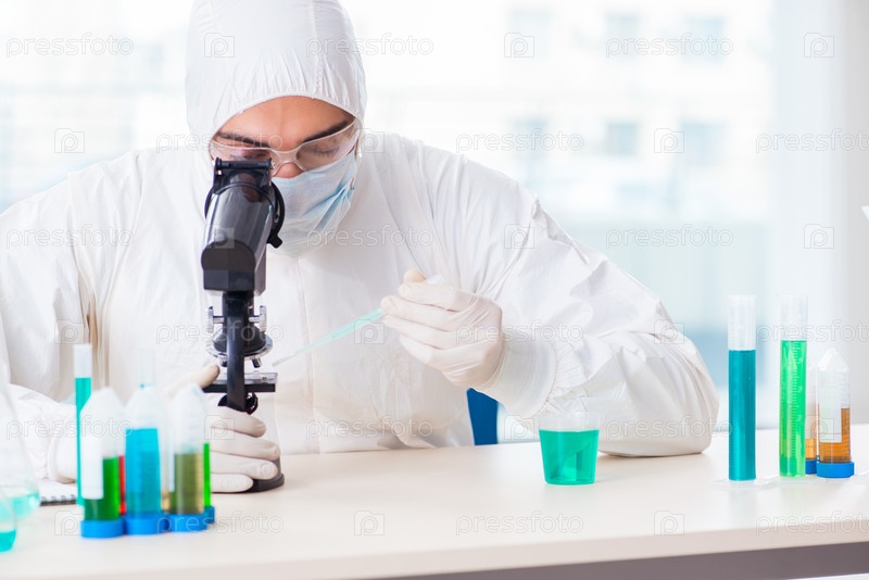 Молодой студент-химик, работающий в лаборатории по химическим веществам