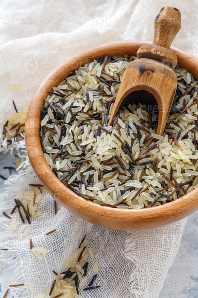 Деревянная ложка в смеси белого и дикого риса