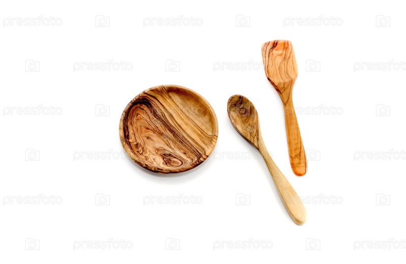 Деревянная посуда на белом фоне