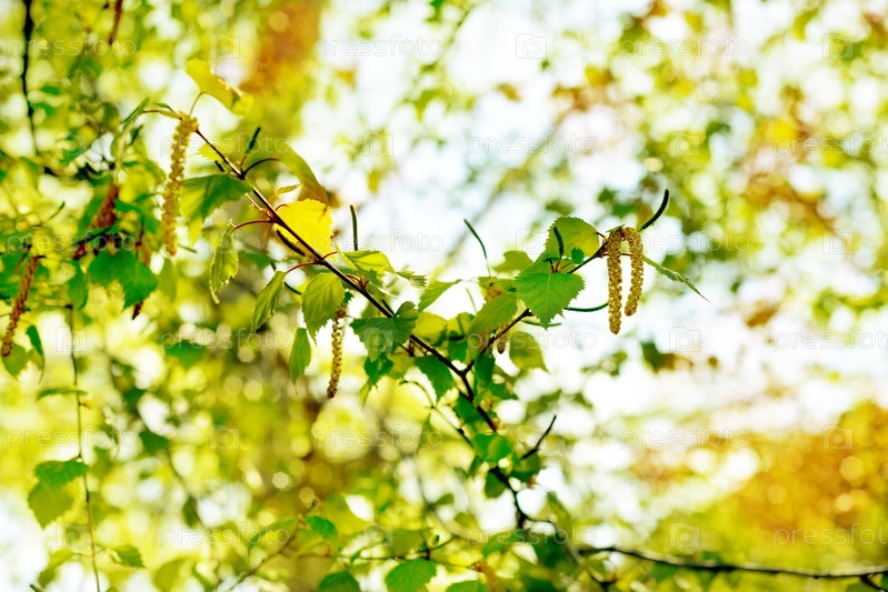 Фон с ярко-зелеными листьями березы