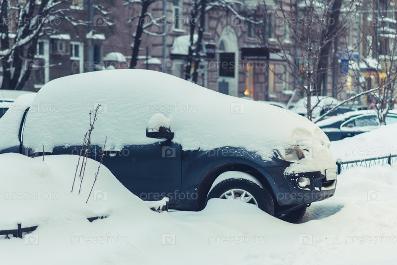 Автомобили припаркованы вдоль дорог, покрытых снегом