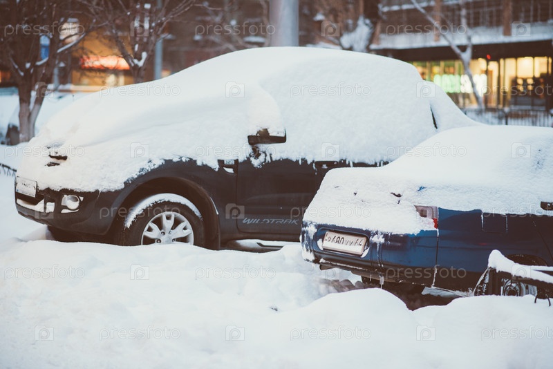 Автомобили припаркованы вдоль дорог, покрытых снегом