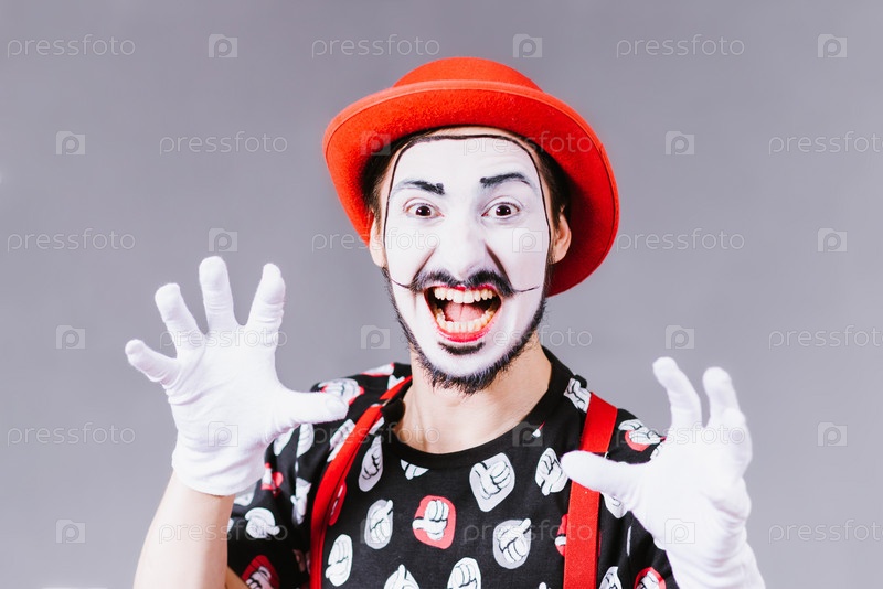 Веселые мимы позируют и гримасируют в студии