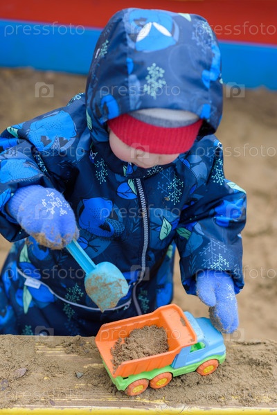 Ребенок играет в машины на улице