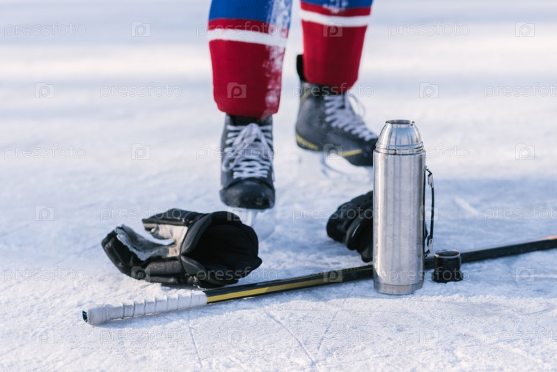 Хоккеист пьет чай перед игрой