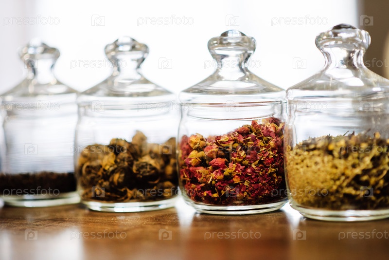 Близость к стеклянным банкам, в которых лежит зеленый чай