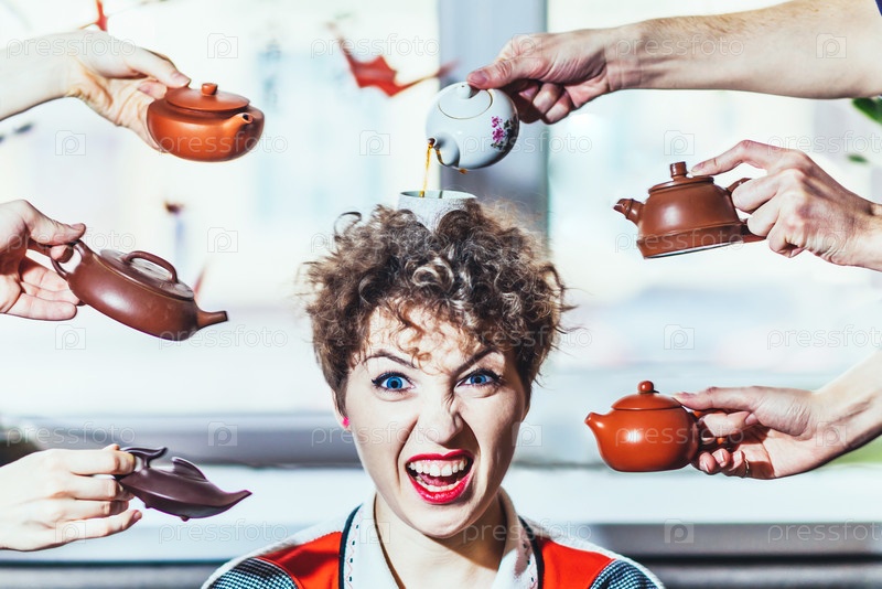 Девочка на ее голове - это чашка, в которую наливают чай из чайника