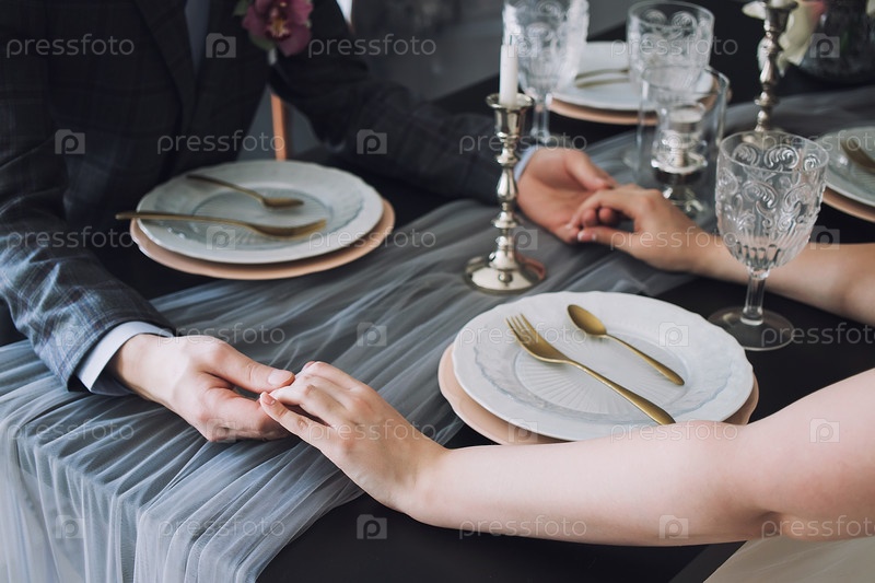Романтическая пара, держащая друг друга за руку во время ужина в роскошном ресторане