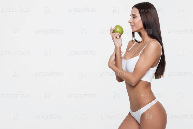 Сэнсуальная женщина ест яблоко