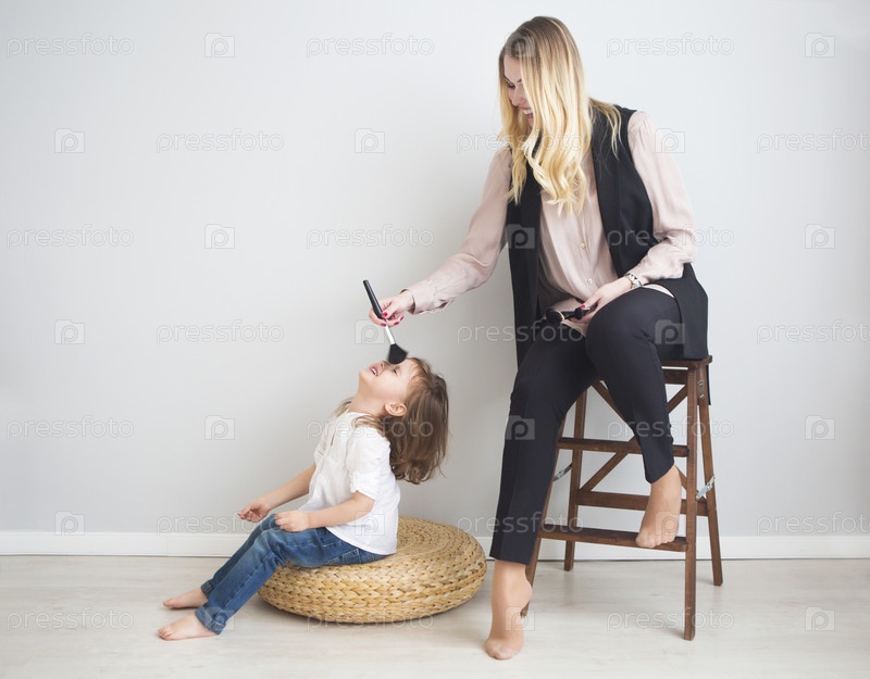 Мать и дочь делают макияж друг другу