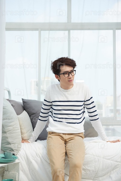Парень отдыхает на кровати