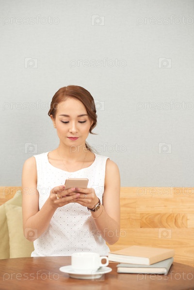 Молодая азиатская женщина в кафе